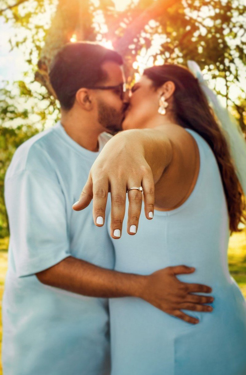 Seis anos depois, veio o pedido de casamento. Uma surpresa, em um restaurante, do jeitinho que somos: romântico, engraçado e discreto. Eu me emocionei, ele ficou tímido, e naquele momento tudo fez ainda mais sentido.